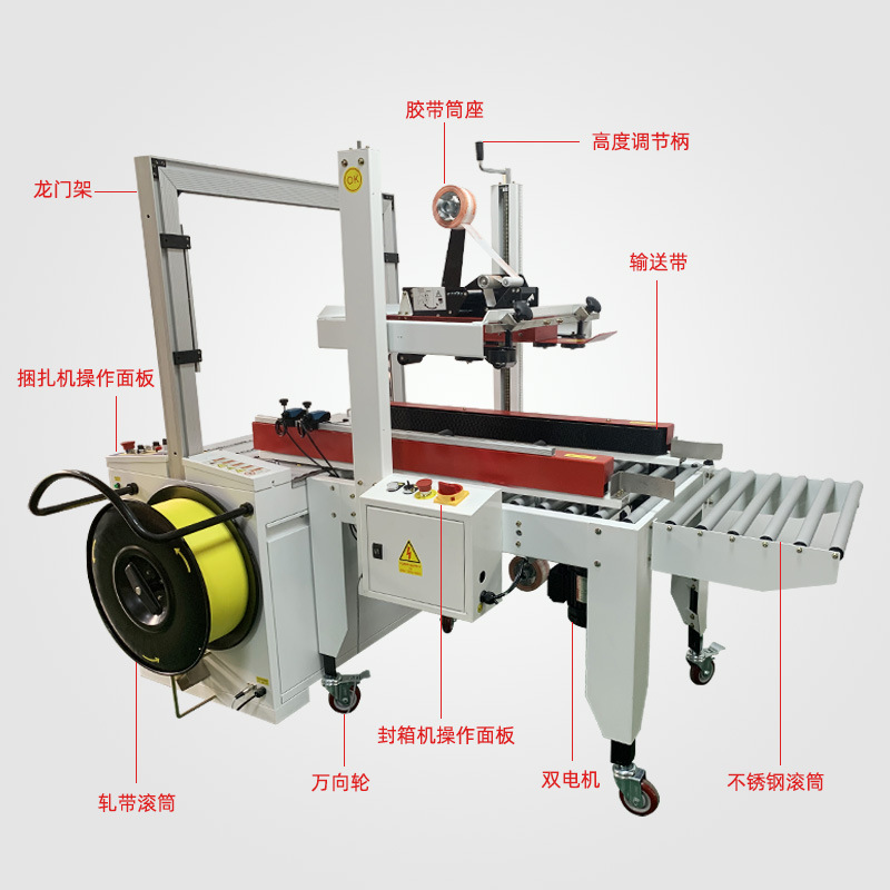 - 適用范圍廣:可以對各種尺寸和形狀的箱子進行封箱打包,只要箱子的尺寸在機器的設計范圍內。通過調整相關的參數和部件,如輸送帶寬度、折頁板位置、打包帶長度等,能夠適應不同類型的包裝需求,具有很強的通用性。