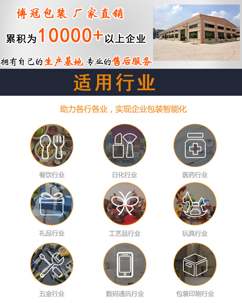• 制造業:無論是電子電器產品、五金工具還是日用消費品等制造業,在產品包裝環節都需要使用封箱機。全自動一字封箱機能夠為這些產品提供高質量的封箱服務,保證產品在運輸過程中不受損壞,同時提高生產效率,降低包裝成本。
