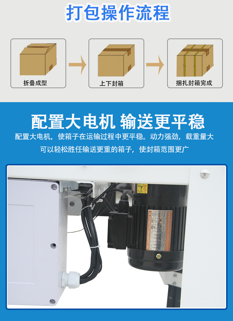 • 操作簡便:一般配備簡單易懂的操作面板,操作人員可以通過面板輕松設置各種封箱參數,不需要復雜的培訓就能掌握操作方法。而且機器的維護相對簡單,降低了使用門檻。