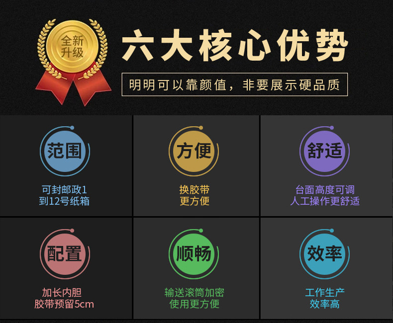 膠帶輸送機(jī)構(gòu):主要由多個滾輪和導(dǎo)向桿組成。膠帶從膠帶卷引出后,經(jīng)過這些滾輪和導(dǎo)向桿,被輸送到紙箱封口處。其中一些滾輪是帶有壓力的,用于將膠帶緊密地貼合在紙箱上。在膠帶輸送過程中,會有相應(yīng)的裝置來控制膠帶的輸送長度,以適應(yīng)不同尺寸紙箱的封箱需求。