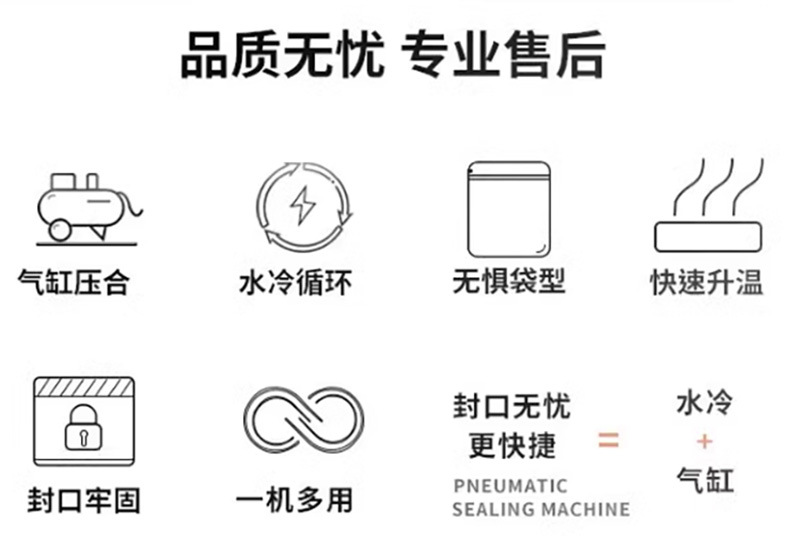 2. 持續工作耐力超群:水冷系統有效驅散設備運行產生的熱量,讓機器擺脫過熱困擾,可長時間維持穩定性能,不間斷作業。面對電商大促、工廠趕工高峰,能與高速生產線同頻共振,持續輸出高質量封口服務,不拖生產后腿。