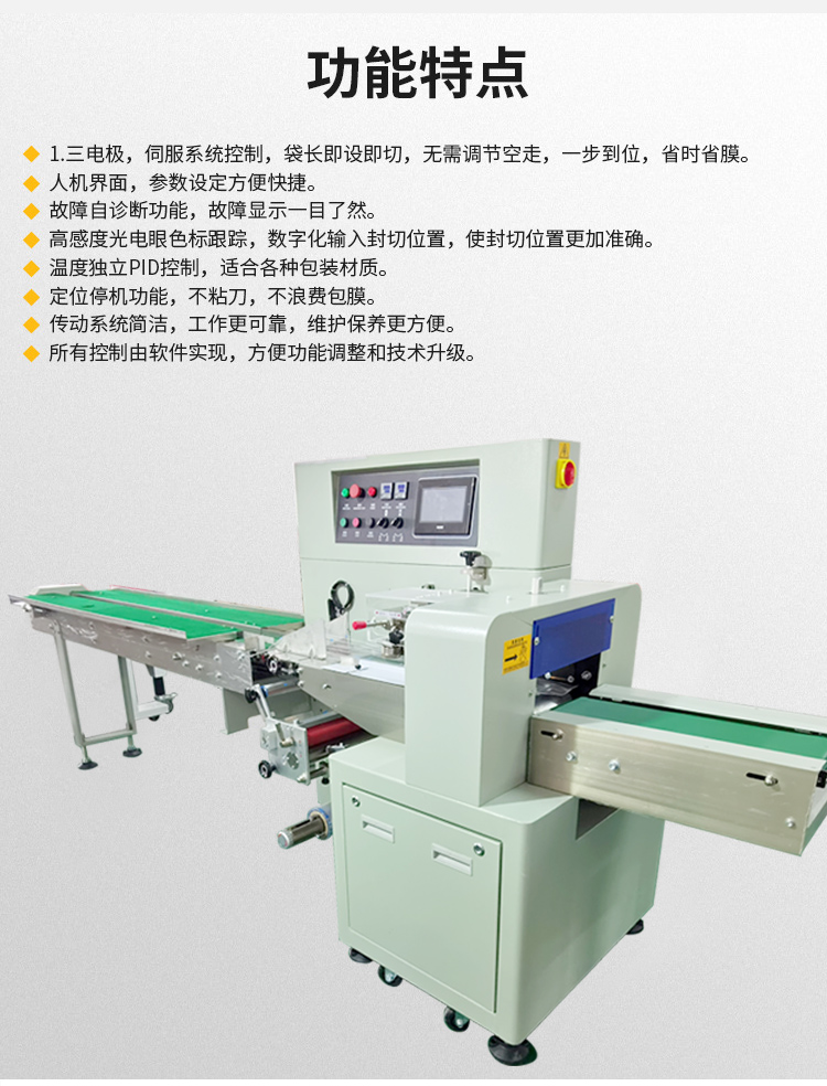 - 食品行業:餅干、巧克力、糖果、小零食、速凍食品等規則形狀的產品,可實現高效連續包裝,保持產品新鮮度和避免污染。