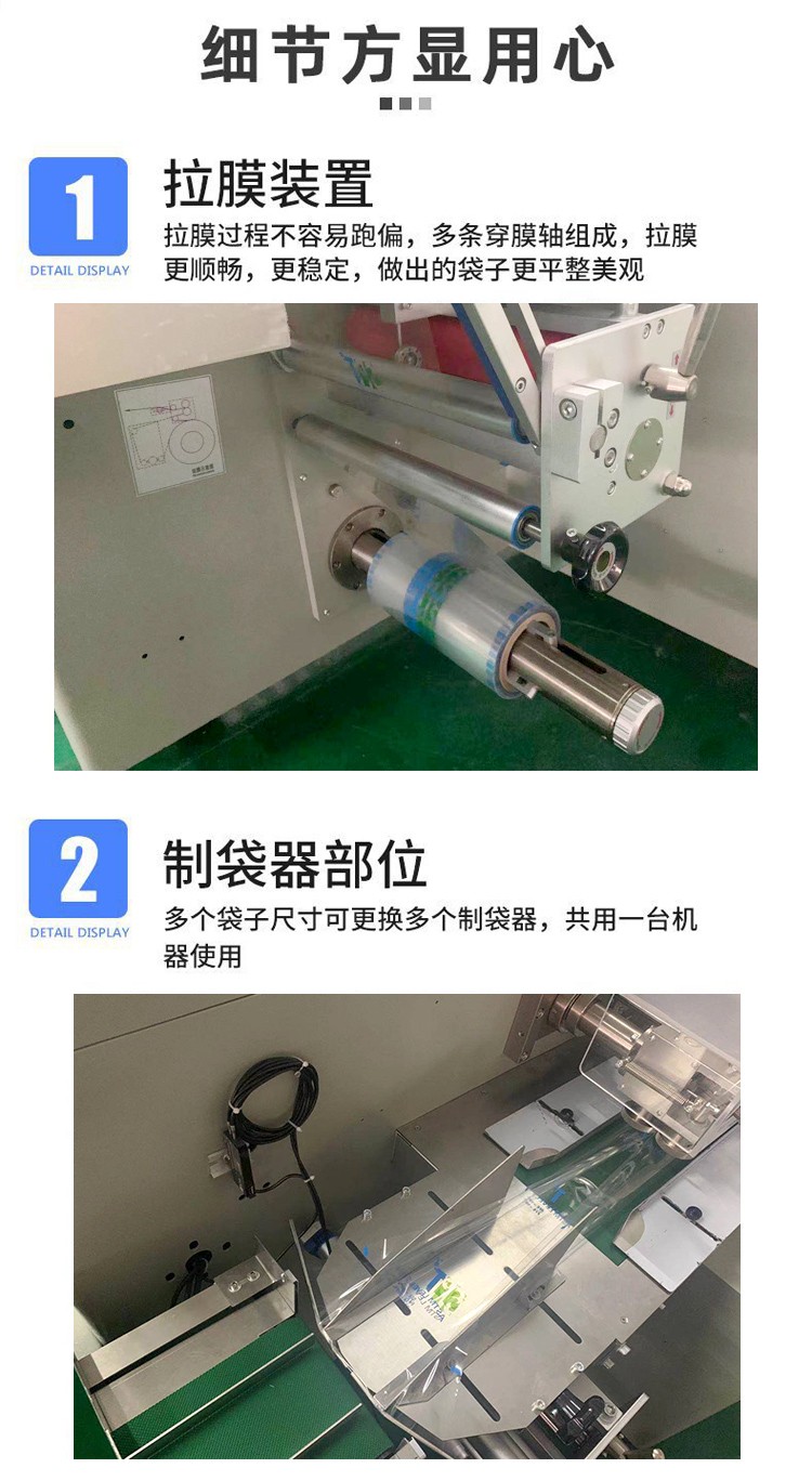 - 大型食品:面包、冷凍餃子等大型固體食品,上膜式設計便于將體積較大的產品進行包裝,能夠更好地包裹產品,保證包裝效果。