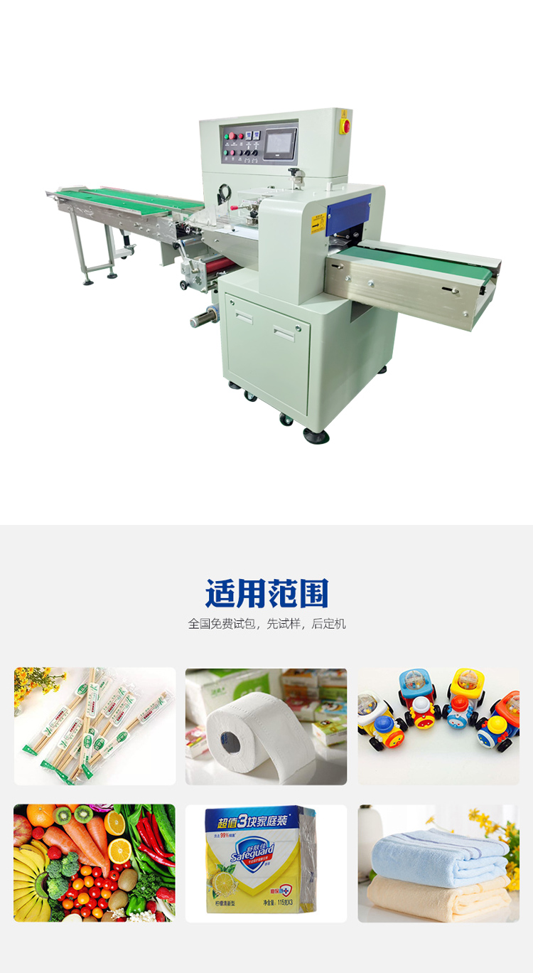 枕式包裝機常見類型有水平枕式包裝機、熱收縮枕式包裝機、上膜枕式包裝機、下膜枕式包裝機等,以下是不同類型的枕式包裝機適用的產品包裝情況: