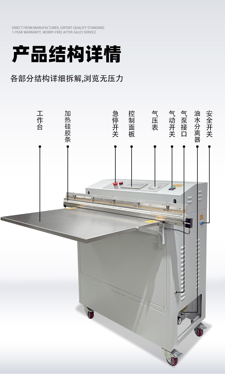 - 功能匹配:根據核心需求選擇集成功能,例如食品行業優先選 “真空 + 充氣 + 印字” 款,工業領域可側重 “真空 + 寬邊封口” 款。