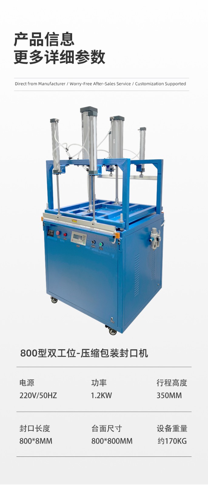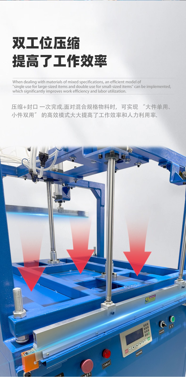 影響壓縮封口機封口效果的核心因素可歸納為設備參數、包裝材料、操作維護三大類,每類因素直接關聯封口的密封性、牢固度和外觀。