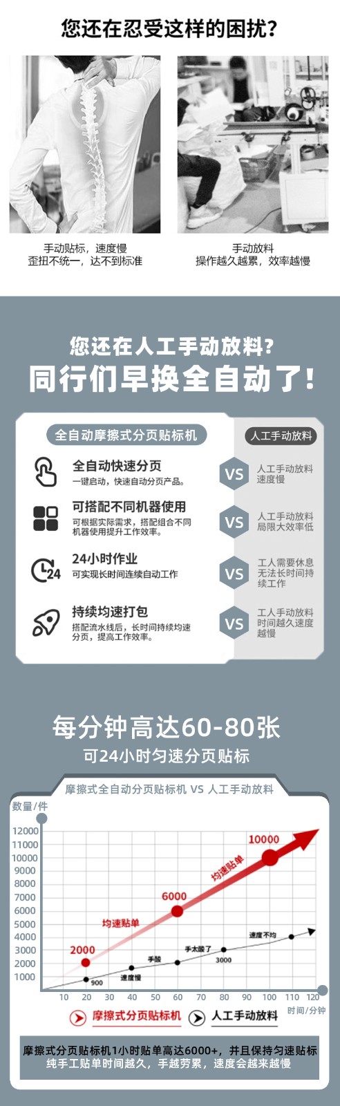 省人工成本:自動完成分頁、貼標、覆標全流程,1 臺設備可替代 3-5 名人工,且避免人工操作誤差。