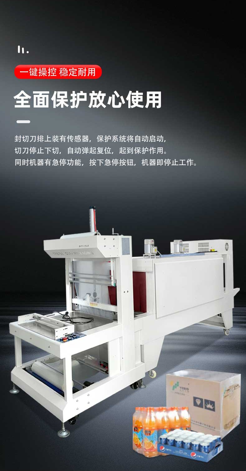 冷卻與輸出:收縮后的包裝經(jīng)冷卻系統(tǒng)快速定型后自動(dòng)輸送至成品區(qū)。