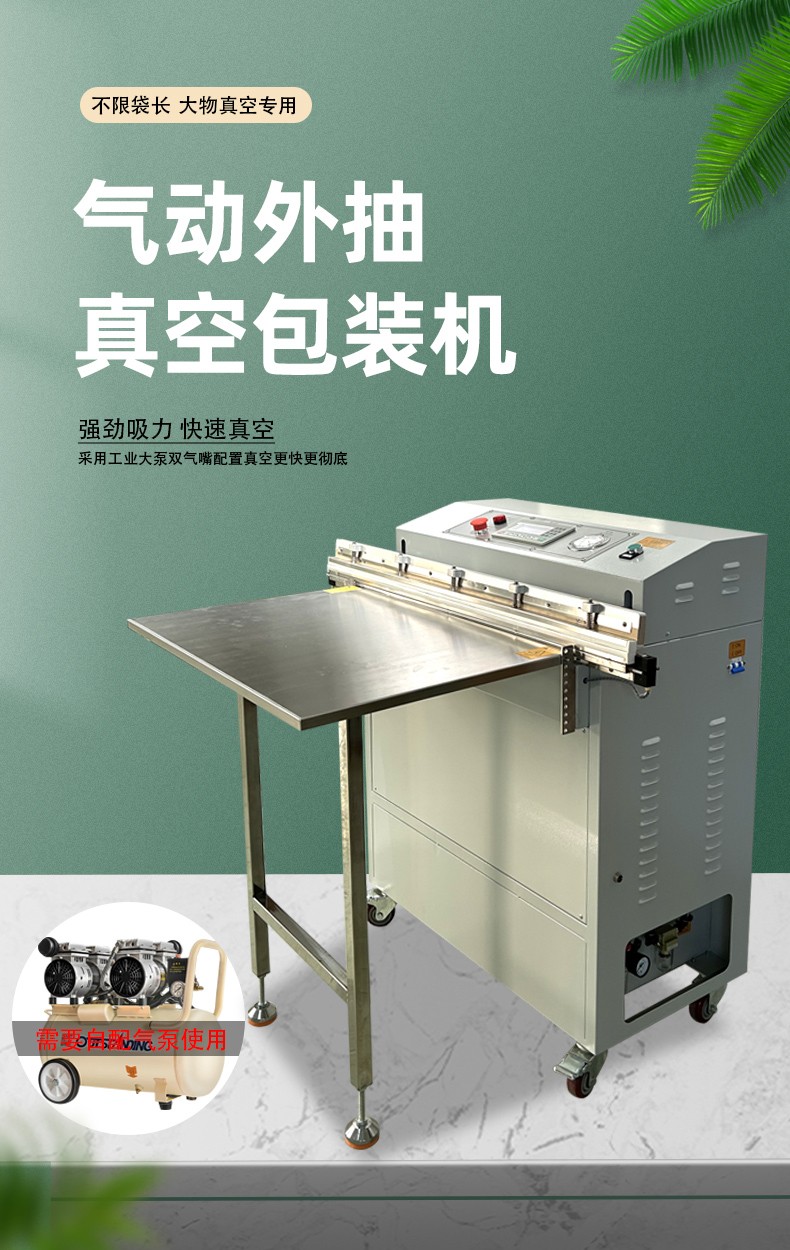 外抽真空包裝機是一類外置式抽氣的包裝設備,通過將抽氣嘴伸入包裝袋內完成抽真空、封口作業,適配各類包裝袋(尤其是大尺寸、異形件包裝),廣泛應用于電子元器件、五金配件、食品、醫藥、家紡等行業。