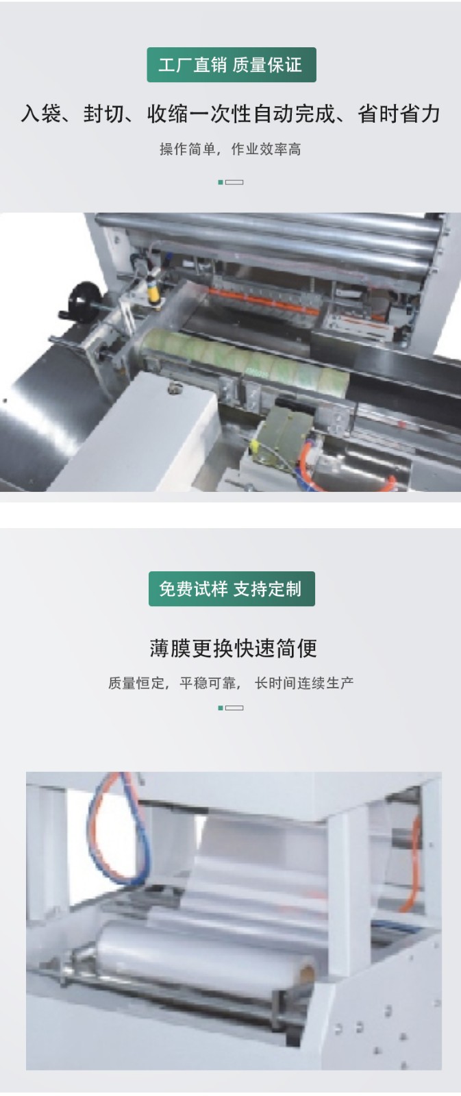 - 自動包裝流程:從膠帶輸送、包裝材料包裹到封口等一系列操作基本實現自動化。設備通過先進的控制系統和機械傳動裝置,自動完成各個包裝環節,大大減少了人工干預。例如,在膠帶進入包裝機后,機器會自動完成薄膜包裹、折疊袖口、封口等動作,操作人員只需要進行簡單的監控和設備維護即可。