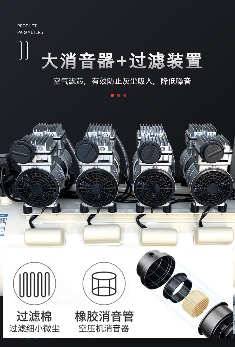 - 牙科設備:在牙科治療椅上,空氣壓縮機為牙鉆、口腔清潔噴槍等設備提供動力。牙鉆通過壓縮空氣驅動,可以高速旋轉,用于去除牙齒上的齲齒部分。口腔清潔噴槍利用壓縮空氣將水或清潔劑霧化,對口腔進行清潔。