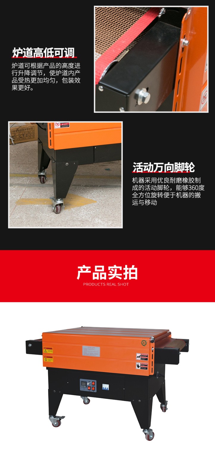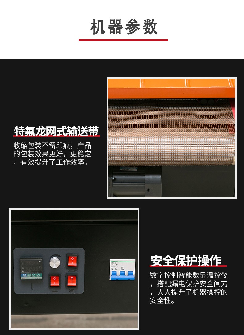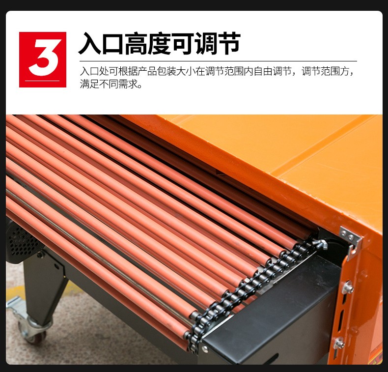 - 用于傳送需要包裝的產品。通常是由輸送帶組成,輸送帶的速度也可以調節。這使得不同尺寸和包裝速度要求的產品都能在機器中順利通過。比如,對于小型的文具產品,輸送帶可以以較慢的速度運行,保證熱收縮包裝的質量;而對于批量較大的食品包裝,可以加快輸送帶速度,提高包裝效率。