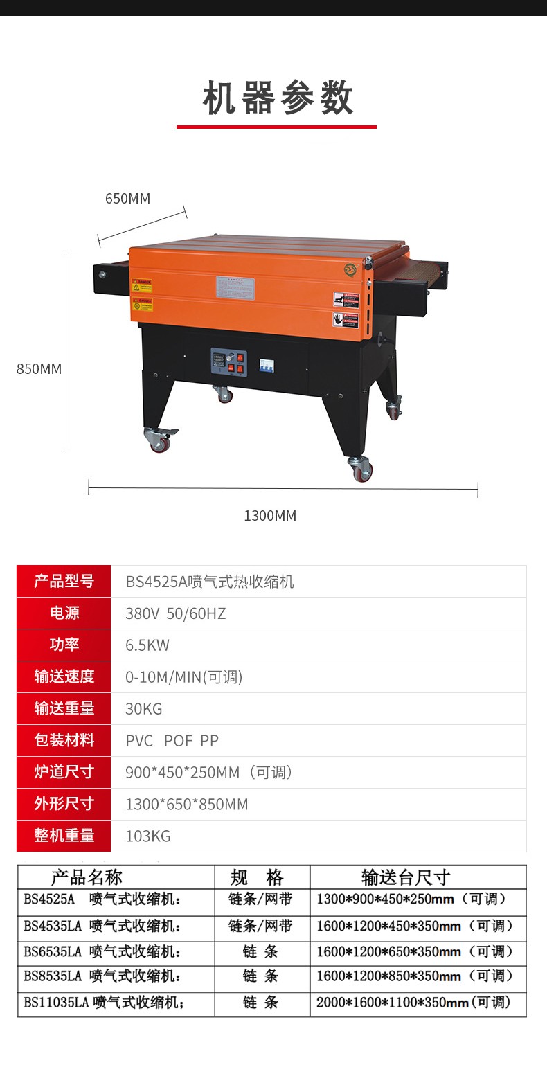 - 可以用于包裝各種形狀和尺寸的產品。無論是規則的長方體、圓柱體產品,還是一些形狀不規則的產品,只要選擇合適的包裝薄膜,都可以通過噴氣式熱收縮機進行有效包裝。