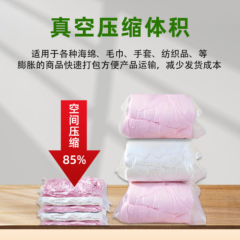 • 家居用品:用于羽絨被、棉被、枕頭、毛絨玩具等蓬松物品的收納包裝,可大大節省存儲空間,使家居環境更加整潔有序。