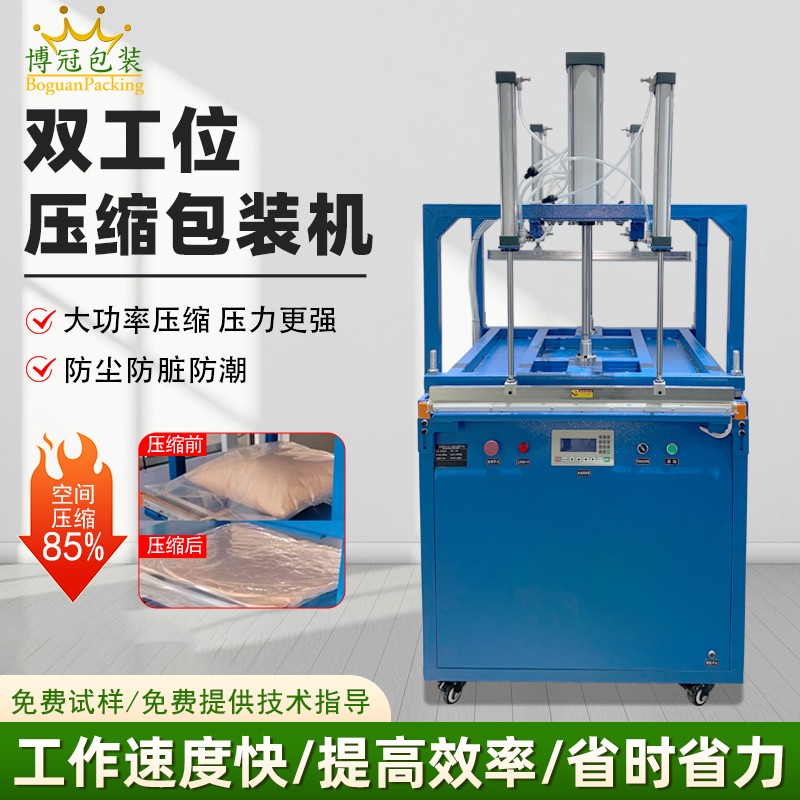 雙工位壓縮封口機:兩個工位可同時作業,一邊封口時另一個可放件 / 取件,適合中小批量、多規格產品(如多口味食品、電子元件袋),效率比單工位高 50%-80%。